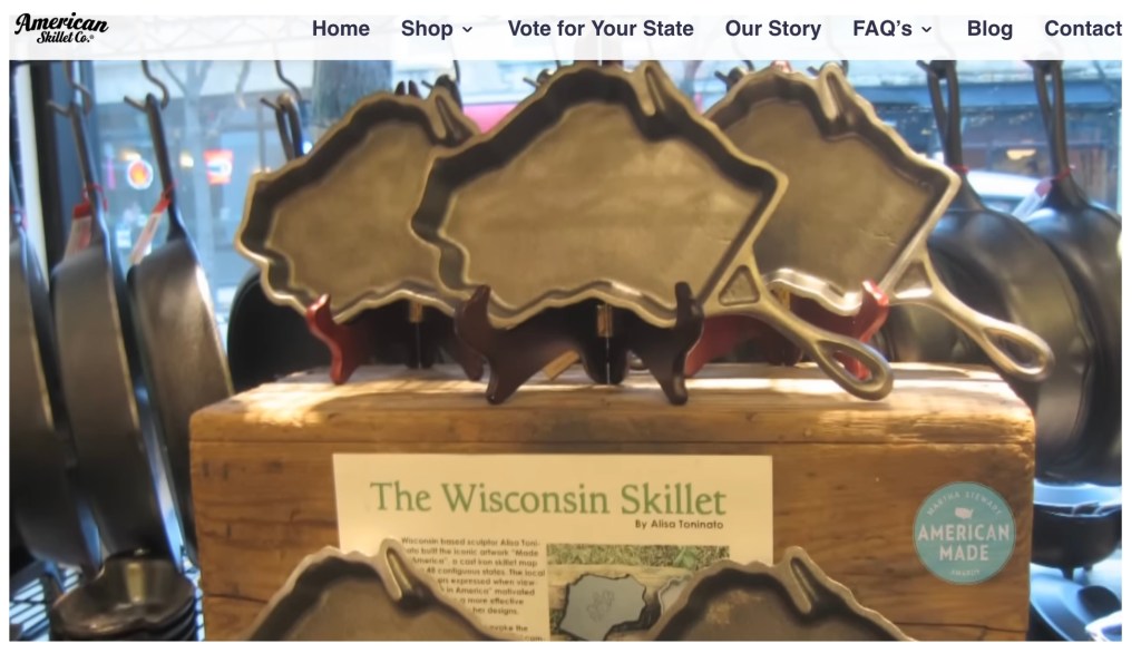American Skillet Company is out of Madison, Wisconsin. Founding owner and metal artist, Alisa Toninato, came up with the creative idea to make an iron skillet for each state. Fabulous!