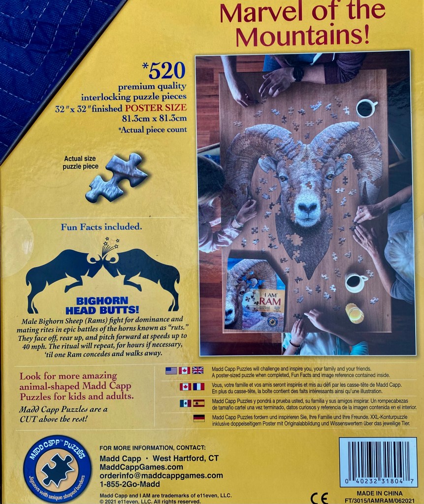 I came across this Ram puzzle this weekend. It spoke to me. That’s an impressive box cover. What’s interesting is that the puzzle, once completed, is the shape of the Ram. Beautiful!