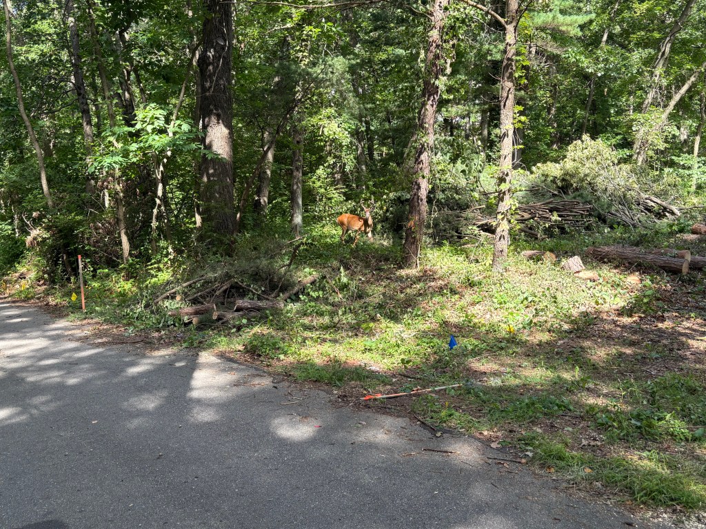 As I was walking on a narrow wooded street, I sensed something. I turned to my left and this deer was frozen in place.