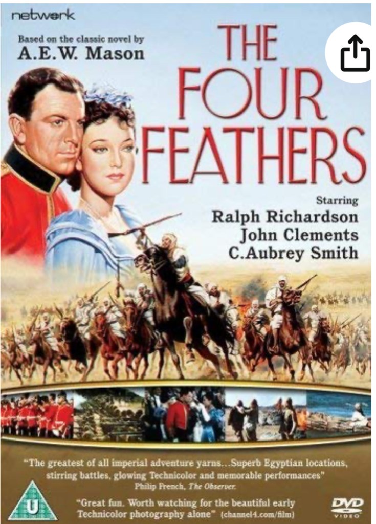 In The Four Feathers, a man decides not to go to war, and his four friends each give him a “white feather” symbolizing “cowardice.”