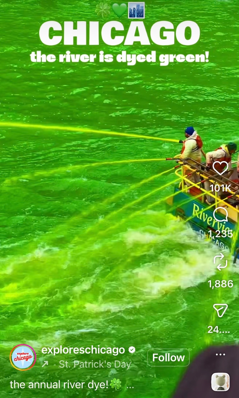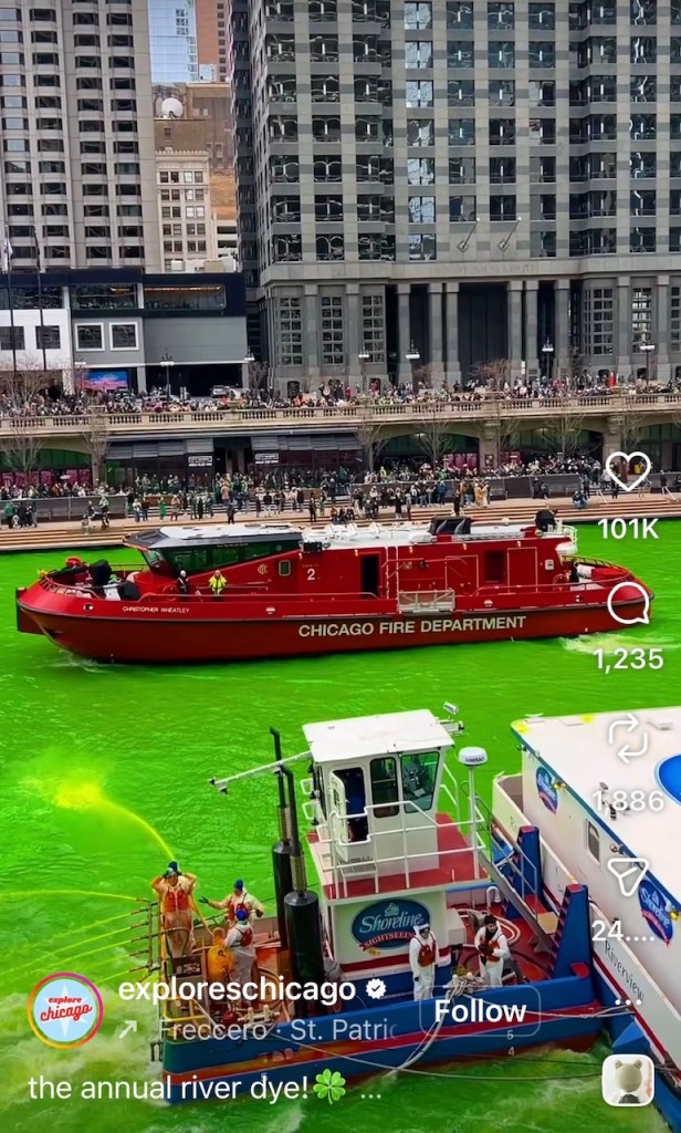 For those of you not from Chicago, you might not know that St Patrick’s Day celebrations are big here. They turn the Chicago River green.